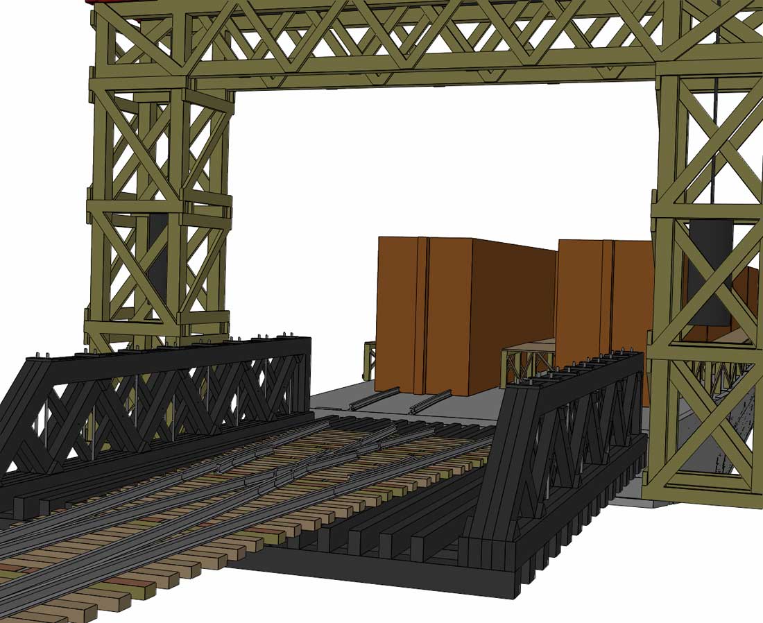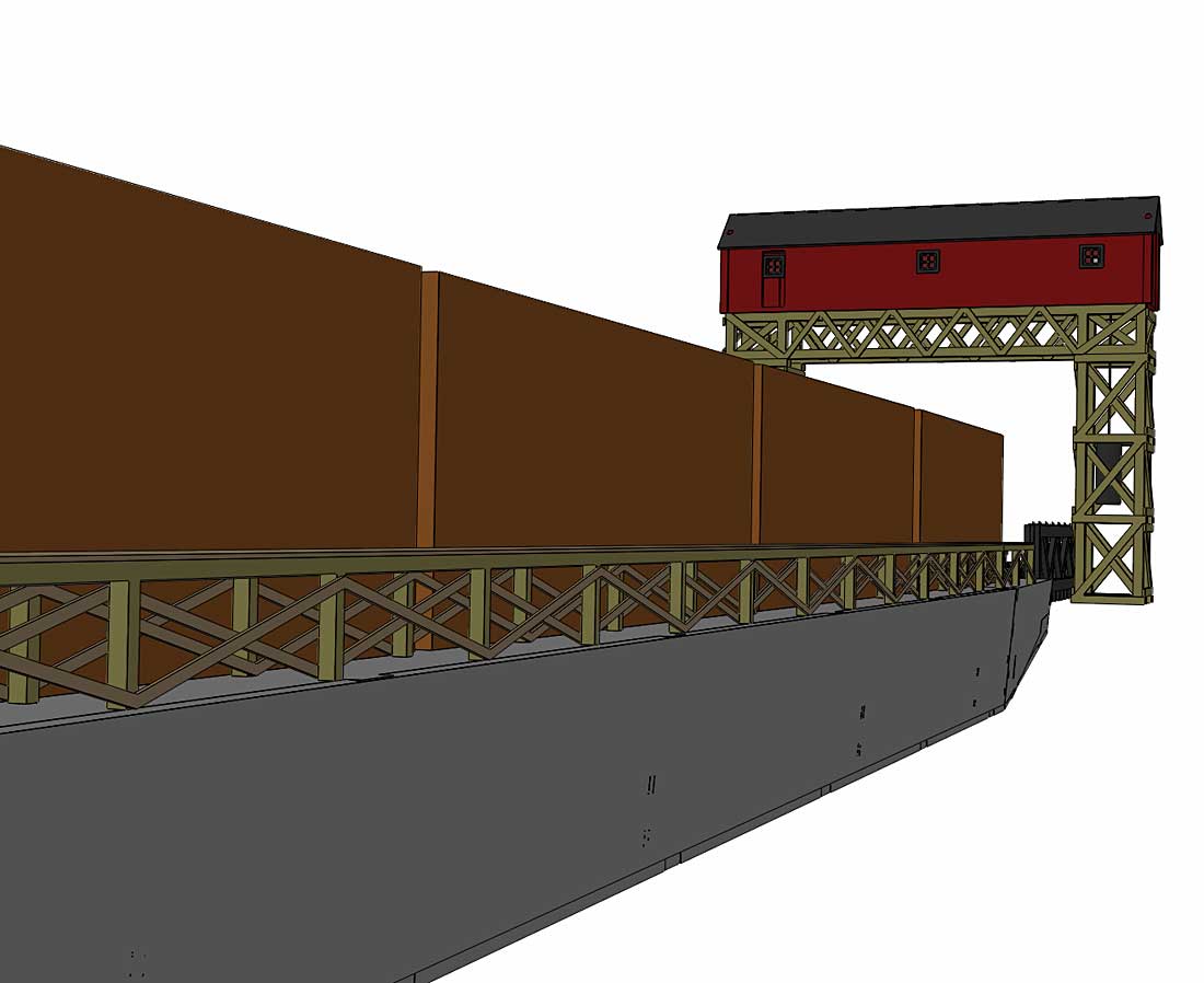 I guess these were called a counterweight building, since this is where the pulleys for the counterweights were supported. This is the HO model from the 3D renderings I have posted the last couple of days.